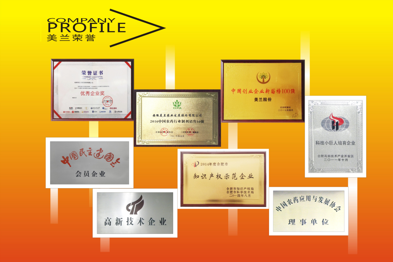中国年度企业治理奖及企业奖”、子公司美兰农业获中国农药工业协会颁发的“2017中国农药行业制剂销售50强”等诸多荣誉。
